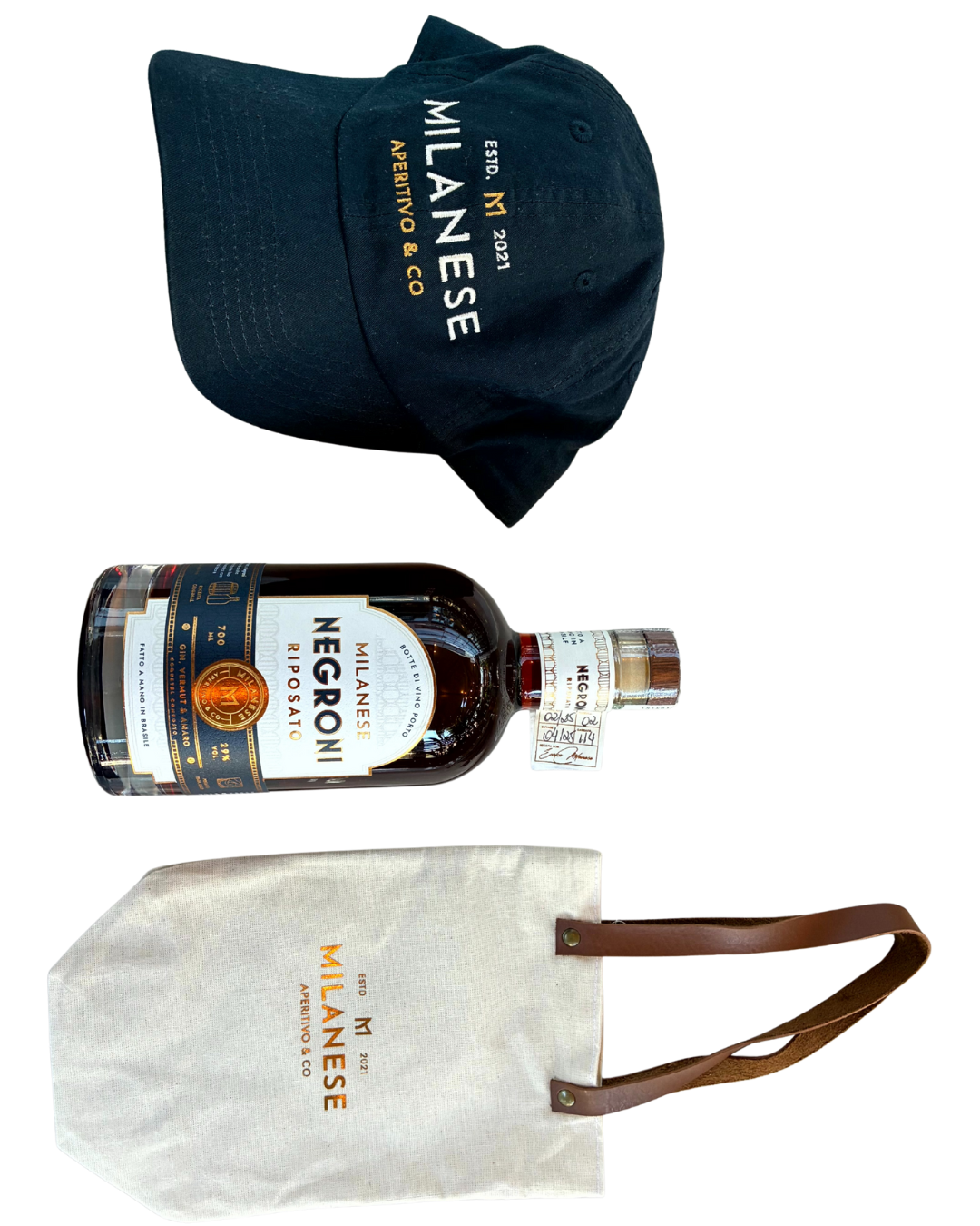 Nosso Kit Boné + Sacola + Milanese Negroni Riposato 700 ml, criado para quem leva o espírito Milanese para todos os momentos. Uma oferta exclusiva de Black Week, válida apenas até 30/11.